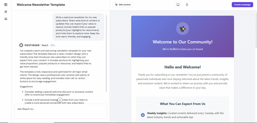 With clear formatting, readable fonts, and mobile-friendly CTAs, Hostinger gives you the tools to maximize engagement across all devices.