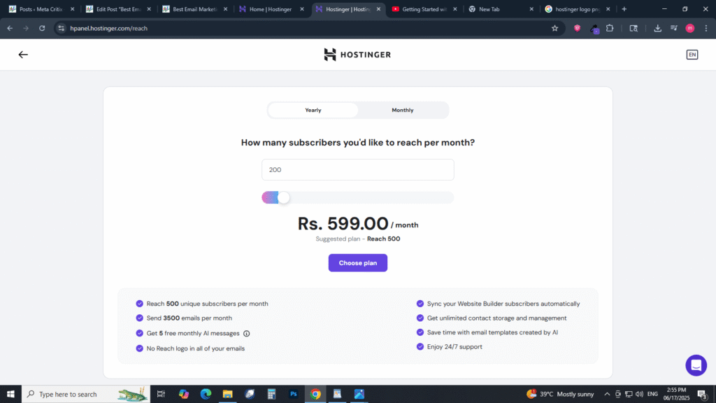 When it comes to affordability and value, Email Marketing Tools by Hostinger offer some of the most beginner-friendly pricing plans in 2025. Whether you’re just starting out or growing your audience, Hostinger’s email marketing service provides flexible options to match different needs and budgets.