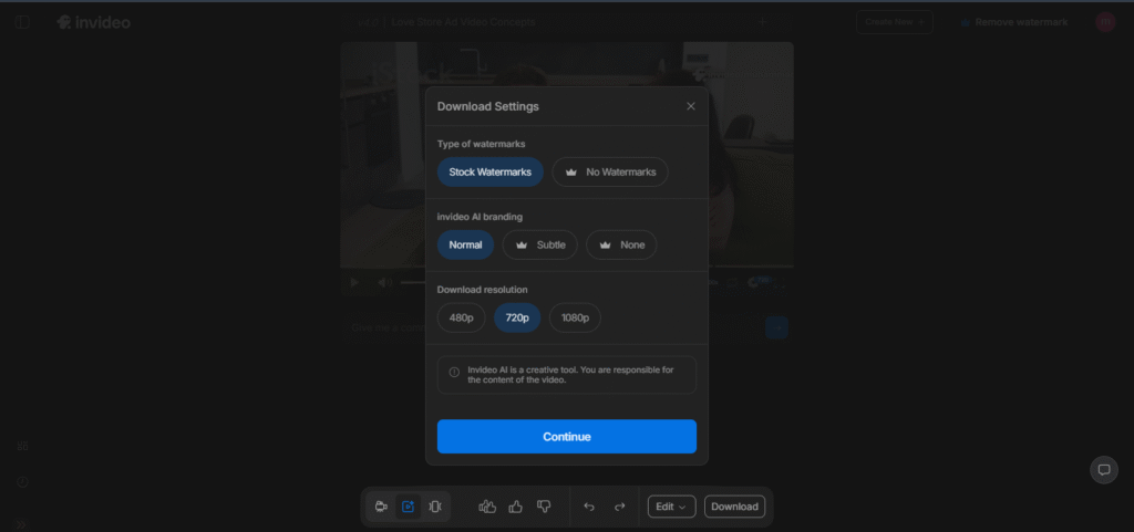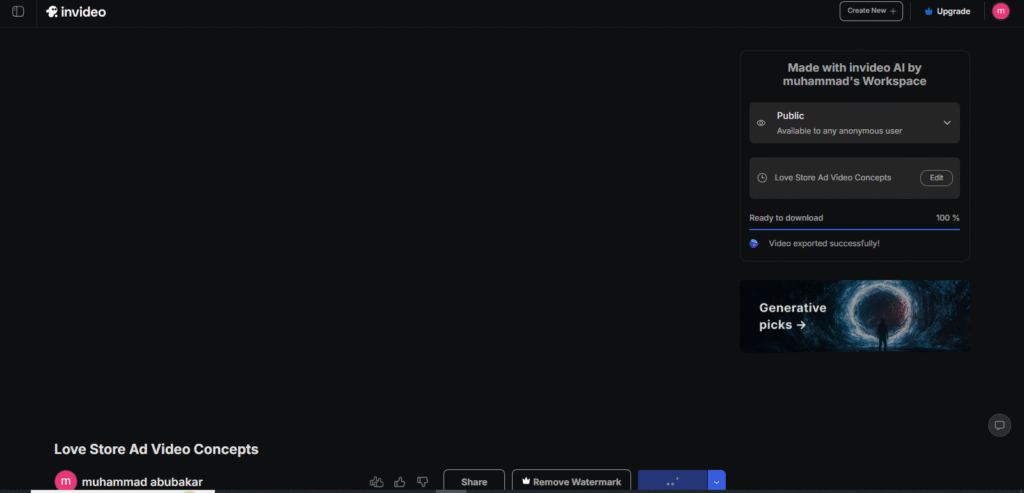 Exporting is straightforward. After finalizing your video, just hit the export button, and InVideo AI will process and render your video in the selected format. In 2025, render speeds have been significantly improved, even for longer or high-resolution videos.