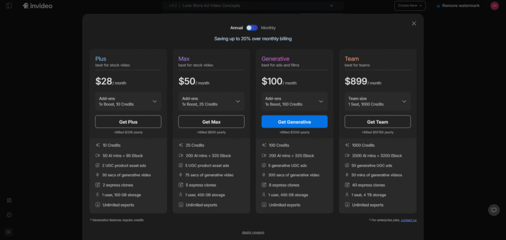 The pricing is competitive compared to other AI video platforms, especially considering the features included. InVideo AI often offers seasonal discounts and lifetime deals, which are great opportunities to save.