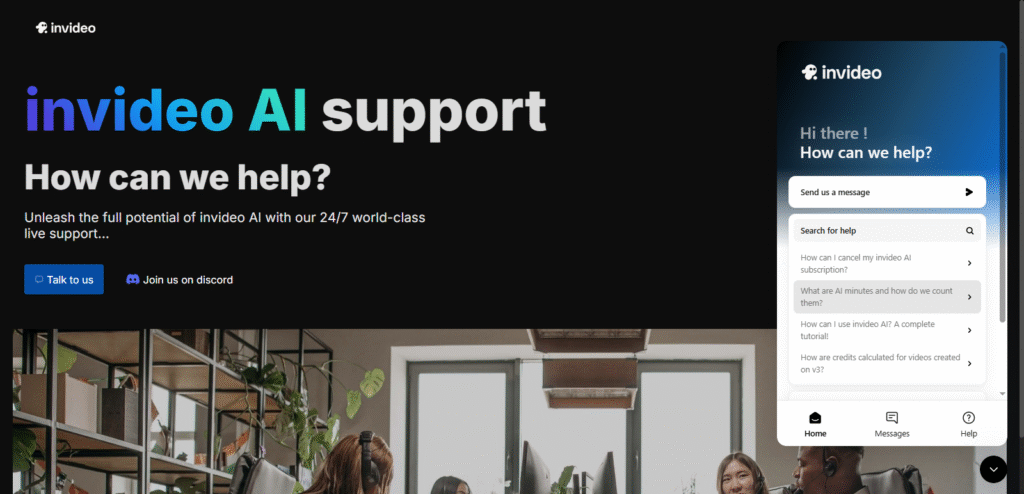 For self-help, InVideo AI provides a knowledge base full of how-to articles, video tutorials, and FAQs. Beginners especially benefit from the step-by-step guides and walkthrough videos.